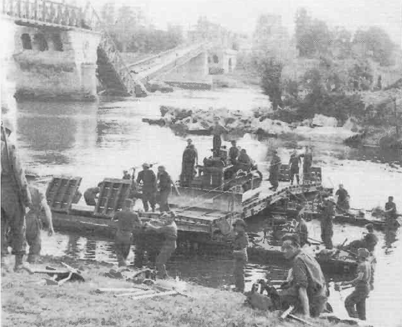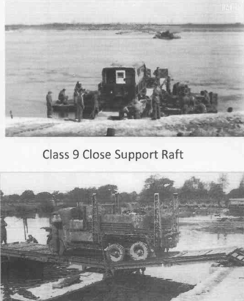 over the rivers on Bailey Rafts. Once a FBE floating bridge was built, the raft